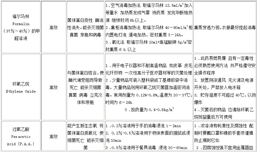 此外,尚可應(yīng)用甲醛或過氧乙酸等進行熏蒸滅菌(詳見表5-2)。